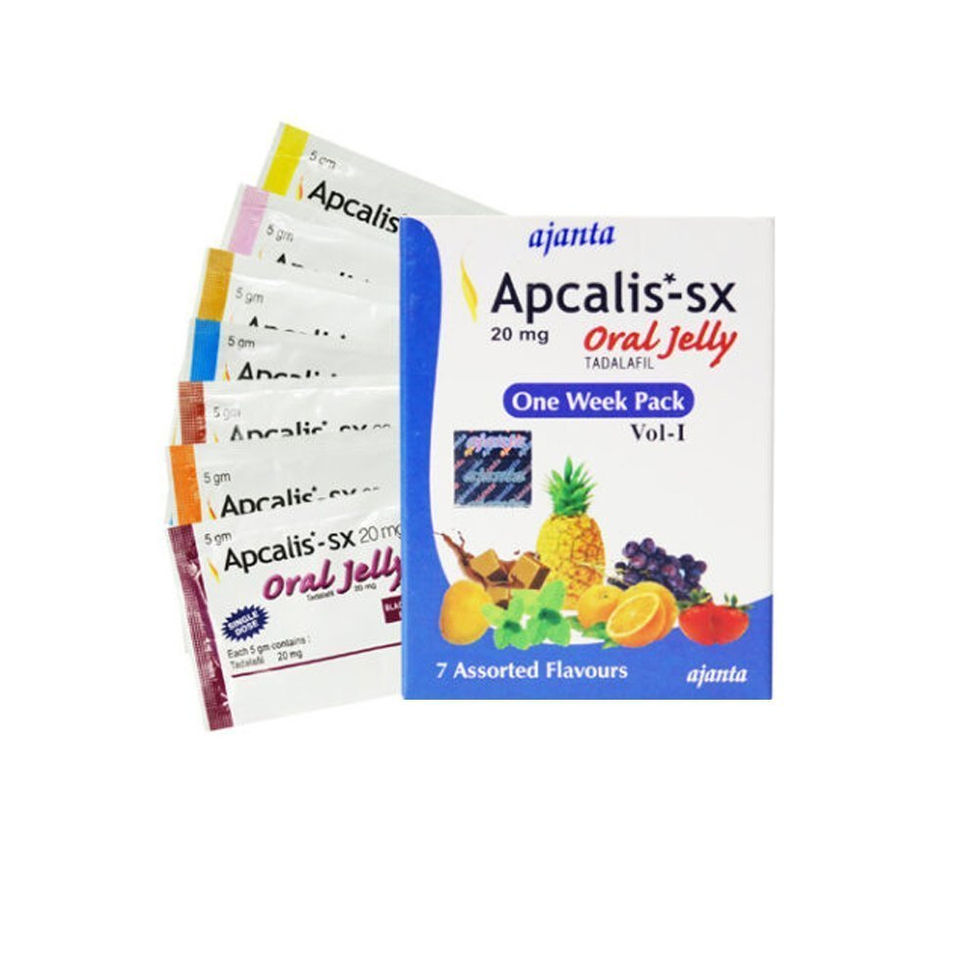 Apcalis Oral Jelly 20 mg is a convenient, fast-acting oral jelly formulation containing Tadalafil 20 mg, designed to support improved blood flow and performance. Unlike traditional tablets, this jelly form is easy to consume and absorbs quickly, making it suitable for those who prefer an alternative to swallowing pills. It comes in assorted flavors, offering both effectiveness and ease of use.