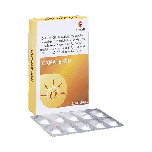 Create-OD Tablets are an oral nutritional supplement designed to support overall health, energy metabolism, and immune function. This formulation provides essential vitamins, minerals, and antioxidants to help enhance vitality, promote recovery, and maintain general well-being.