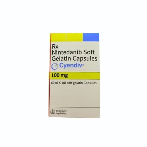 Cyendiv (Nintedanib) 100 mg Capsules are prescribed to help manage conditions involving abnormal cell growth and lung-related diseases. This medication works by inhibiting pathways that contribute to disease progression.