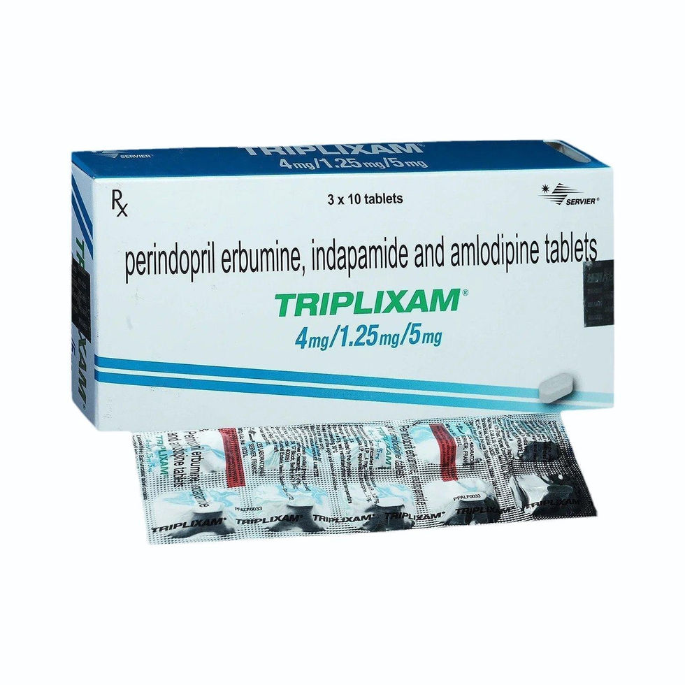 Triplixam Tablet contains Perindopril erbumine, Indapamide, and Amlodipine used to treat high blood pressure.